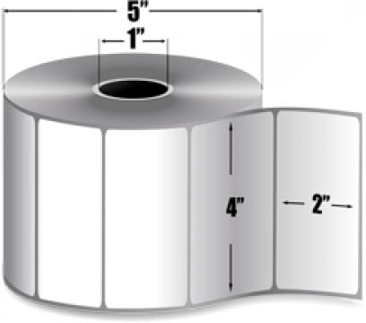 Barcode Label, AirTrack, 4" x 2" White Polypropylene Label, Thermal Transfer, Permanent Acrylic Adhesive, Perforated, Wound Out, 1" Core, 5" Outer Diameter for Desktop Printers. 1110 Labels per Roll, Priced per Roll. Also Available as a Case (Part# AT2200TW-4-2-1110-1). (Compatible 18932-R).