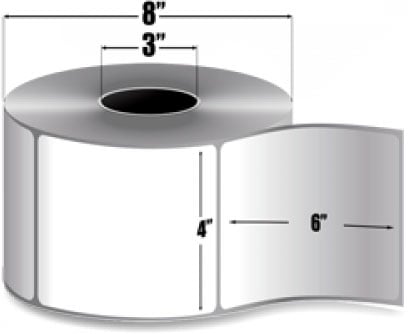 4" x 6" White Polypropylene Label, Thermal Transfer, All Temp Permanent Acrylic Adhesive, Perforated, Wound Out, 3" Core, 8" Outer Diameter for Industrial Printers. 900 Labels per Roll, Priced per Roll. Also Available as a Case (Part# AT2200TW-4-6-900-3). (Compatible 10008530-R , E25743, E03444-R).