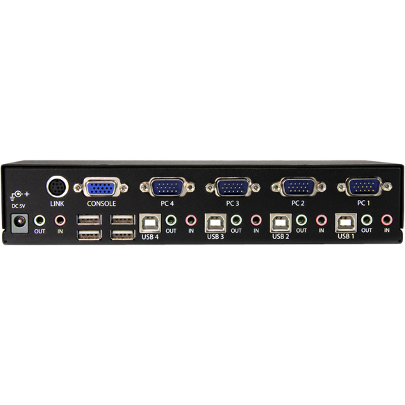 Share keyboard, mouse, speakers and a VGA display between four multimedia computers. This Rack Mountable USB KVM Switch supports high resolution video applications (up to 1920x1440 pixels supported) and audio switching between connected computers, and provides an integrated USB 2.0 hub that lets the selected computer have access shared high speed USB peripherals. Providing control of up to four computers from a single USB keyboard and mouse peripheral set, the switch features a sturdy all metal chassis and can be rackmounted in a server rack/cabinet using an optional Rackmount Bracket kit (SV431RACK) - minimizing clutter and saving space.