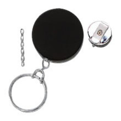 Ring diameter 29 mmRetractable cord length 588mmRetractable chain cordSlide style belt clip on back of reelNickel-plated steel split ring for attachment of badge, keys, etc