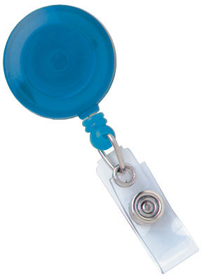 Badge Reel, Round, Plastic, Belt Clip-On, Translucent Royal Blue, 1 1/4", Clear Vinyl Strap. Quantity: 25.