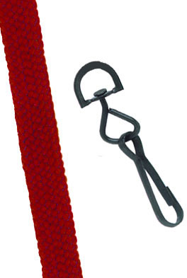 Maroon Flat Braid Woven Lanyard with Black-Oxide Swivel Hook. Lanyard is Both Comfortable and Discreet to Wear. 3/8" (10 mm) Flat; 36" (914) Cut Length Prior to Assembley. Comes with a Crimp Finishing Option. Quantity of 1000.