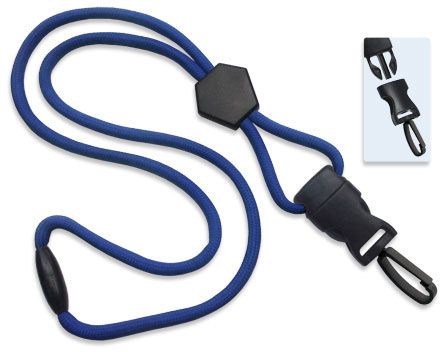 Lanyard Standard, Royal, 1/4" (6mm), Polypropylene Round Material, with Diamond Slider, New Dtach Plastic Swivel Hook. Quantity of 100.