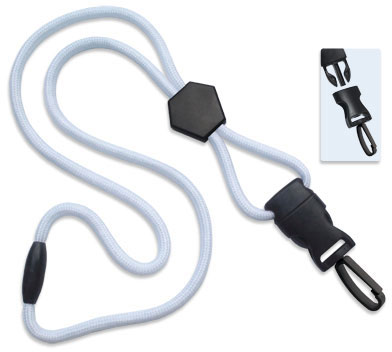 Lanyard Standard, White, 1/4" (6mm), Polypropylene Round Material, with Diamond Slider, New Dtach Plastic Swivel Hook. Quantity of 1000.