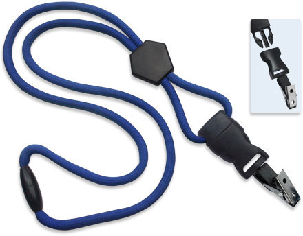 Lanyard Standard, Royal, 1/4" (6mm), Polypropylene Round Material, with Diamond Slider, New Dtach Bull-Dog Clip. Quantity of 100.