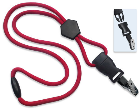 Lanyard Standard, Red, 1/4" (6mm), Polypropylene Round Material, with Diamond Slider, New Dtach Bull-Dog Clip. Quantity of 100.