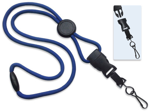 Royal Blue Round Lanyard with a Breakaway, Round Slider & Dtach Swivel Hook. Swivel Hook Detaches to Allow for Easy Access. 1/4" (6 mm) Round; 36" (914 mm) Cut Length Prior to Assembly. Comes with a Round Slider that Has a 3/4" (19 mm) Imprint Area. Quantity of 100.