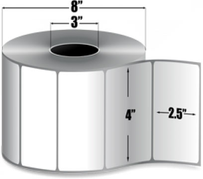 The Zebra Z-Select 4000T is a thermal transfer, bright white, coated, ultra-smooth, paper label with a permanent acrylic adhesive. Offers excellent adhesion on corrugated packaging. Specially coated for use with compatible Zebra Ribbons for superior durability and image quality. Recommended for a wide variety of applications, such as shipping, receiving, and work-in-process labels.